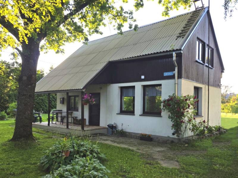 A small two-story summer house in Jaunpils, suitable for a group of friends or relatives (up to 8 people). The house has: 3 bedrooms (2 lockable, 1 walk-through). 3 double beds, 2 single beds, as well as a sofa with a sleeping function.