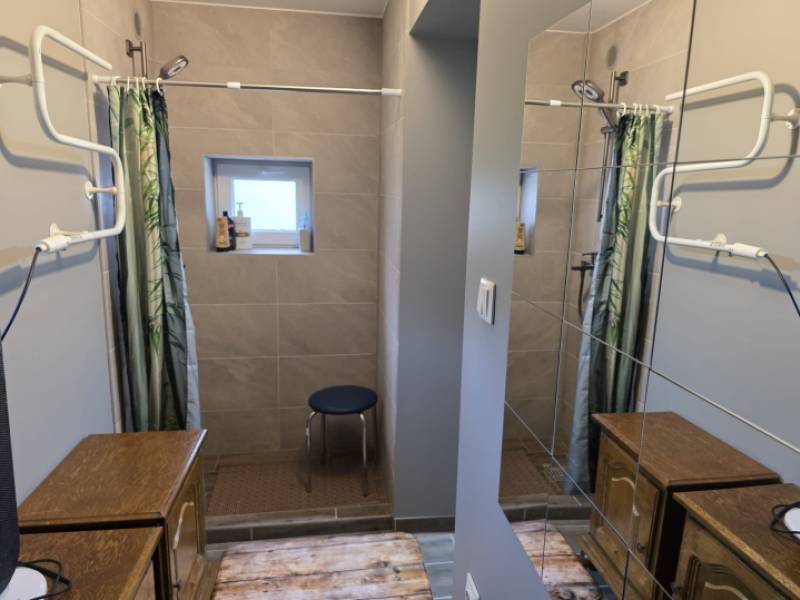 There is a dining room, a mini kitchen with basic equipment, 1 WC and 1 shower, which are shared by the whole house, a large, green area with space for several cars, video surveillance for security. You can use the fireplace and stove for a cozier atmosphere on cooler evenings.