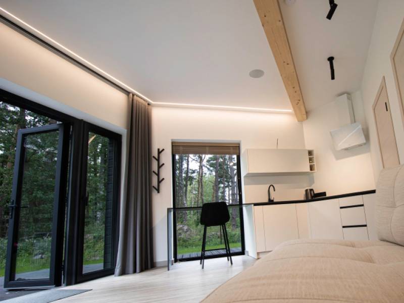 Serenity House is a small cozy holiday home located in Lapmežciems, near the beach. The house was created using only the highest quality materials and appliances. The interior design is ascetic and neutral. There is free Wifi. The house will comfortably accommodate 2 people, but 2 additional beds are possible. There is a sauna and a hot tub, as well as a children's playground.