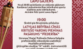 Lāpu gājiens no Kandavas Lauksaimniecības tehnikuma sporta stadiona autostāvvietas līdz Bruņinieku pilskalnam, kur notiks piemiņas pasākums “Piederība” ar uzrunām, dzeju un muzikāliem priekšnesumiem. Pulcēšanās vieta: Kandavas lauksaimniecības tehnikuma stadions, Daigones iela 14, Kandava, Tukuma novads. Gājiena sākums: plkst. 18:30