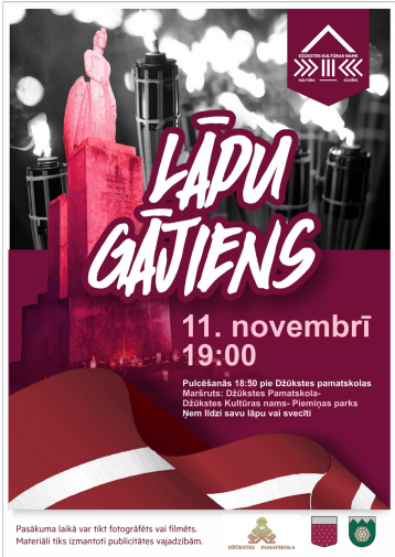 Lāpu gājiens no Džūkstes pamatskolas līdz piemiņas parkam. Pulcēšanās vieta: Džūkstes pamatskola, Džūkste, Tukuma novads. Gājiena sākums: plkst. 19:00