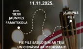 Lāpu gājiens no Jaunpils pamatskolas uz Jaunpils pils laukumu, kur paredzēts piemiņas brīdis, silta tēja un medusmaizīšu baudīšana, kā arī muzikāla programma pils lielajā zālē ar Dobeles Mūzikas skolas audzēkņu uzstāšanos. Pulcēšanās vieta: Jaunpils pamatskola, Jaunpils, Tukuma novads. Gājiena sākums: plkst. 18:00