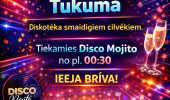 Pēc jaunā gada sagaidīšanas un “Bermudu divstūra” koncerta, svinības turpināsies deju ritmos, ļaujoties mūzikai un brīvai svētku noskaņai. Ikviens tiek aicināts sanākt kopā ar vieglu prātu, labu enerģiju un smaidu, jo bārā “Disco Mojito” būs kārtīga ballīte, kurā valdīs prieks un pozitīvas emocijas. Norises vieta: Šēseles iela 1, Tukums. Norises laiks: 01.01.2026 no plkst. 00:30. Vairāk informācijas: 24662466