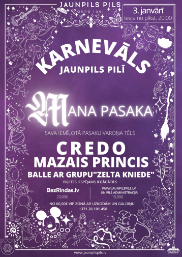 Jaunpils pils, kā jau ierasts, tūlīt pēc Jaunā gada iestāšanās pārvērtīsies par pasakainu karnevāla pasauli, kur senie mūri atdzīvosies krāsās, mūzikā un noslēpumos, jo janvāria pirmajā sestdienā noritēs tradicionālais Jaungada karnevāls. Apmeklētāji kļūs par pasaku tēliem un būs aicināti iejusties maģiskā stāstā, kurā saplūdīs realitāte ar iztēli. Karnevāls radīs iespēju izdzīvot brīnumu un atklāt katra paša pasaku. Šis būs vakars, kurā fantāzija kļūs par galveno viesi un svētku noskaņa valdīs ik solī kopā ar grupām “Credo” un “Mazais princis”. Norises vieta: Jaunpils pils, “Pils”, Jaunpils, Tukuma novads. Norises laiks: 03.01.2026 plkst. 20:00. Ieejas maksa: 15 - 20 EUR, VIP galdiņi - sākot no 60 EUR. Vairāk informācijas: 26101458, www.jaunpilspils.lv