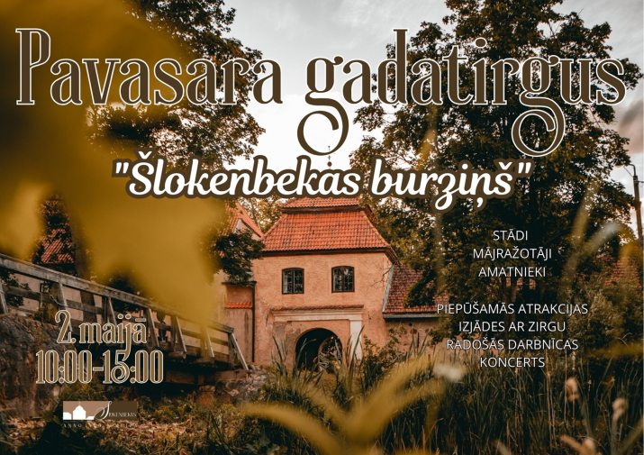 Ikgadējais pavasara gadatirgus Šlokenbekas muižas pagalmā pulcēs garšas, amatniecību un ziedoša pavasara prieku. Apmeklētājus sagaidīs vietējo meistaru darinājumi, gardumi un daudzveidīgas izklaides.