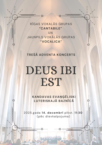 MŪZIKA | Vokālās grupa “Cantabile” un “Vocalica” koncerts “Deus ibi est”