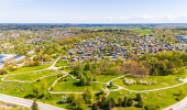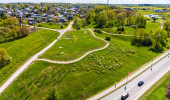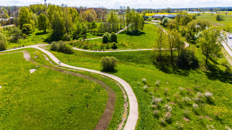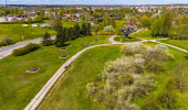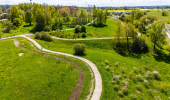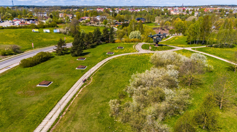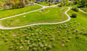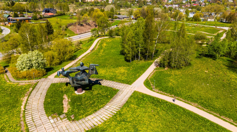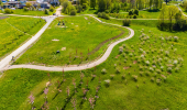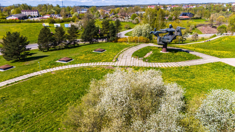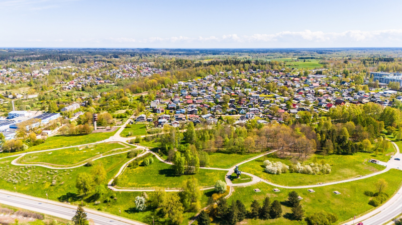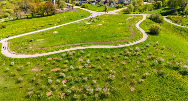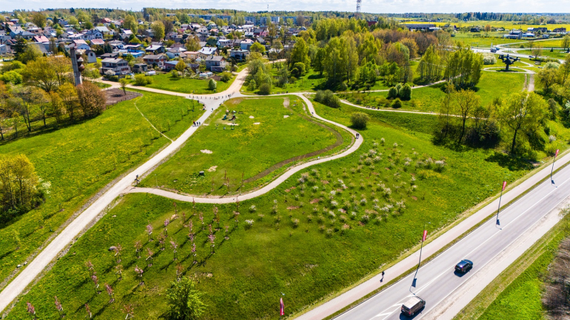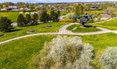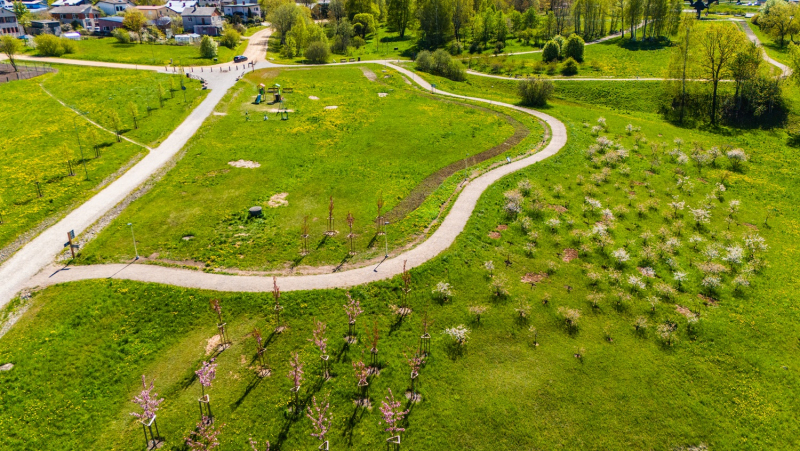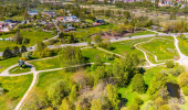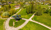 Ziedoņa dārzā Mālkalnā zied dzejnieka un viņa draugu stādītie ķirši. Fotogrāfijās - Mālkalns no putna lidojuma. Foto - Andris Jermuts.