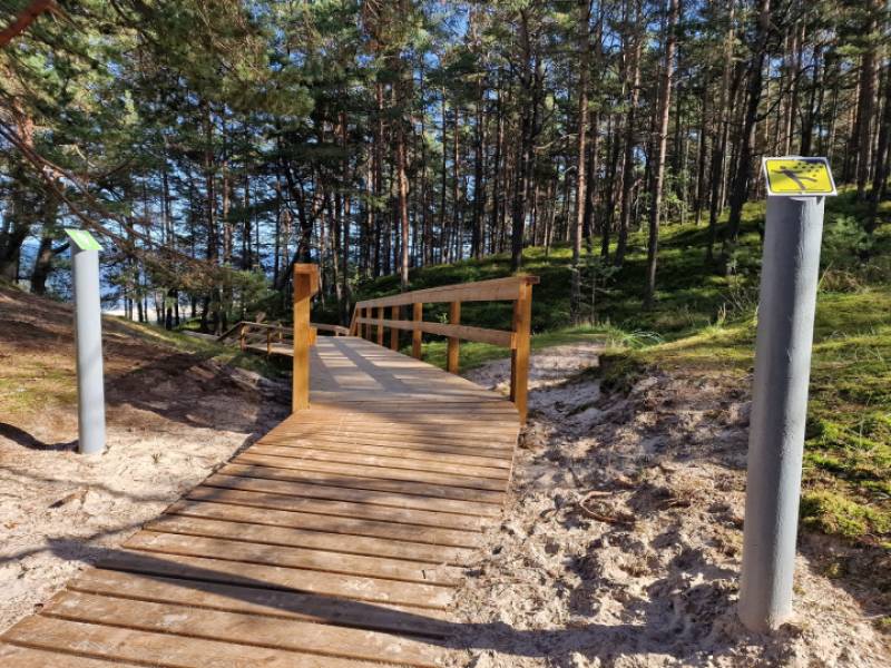 Takas segums piemērots, lai pa to līdz pludmalei varētu pārvietoties ģimenes ar bērniem ratiņos, arī ratiņkrēslos sēdošie ar pavadoni. Uz takas speciāli veidotas vietas, lai apmainītos vietām ar pretīmnākošajiem, nav.