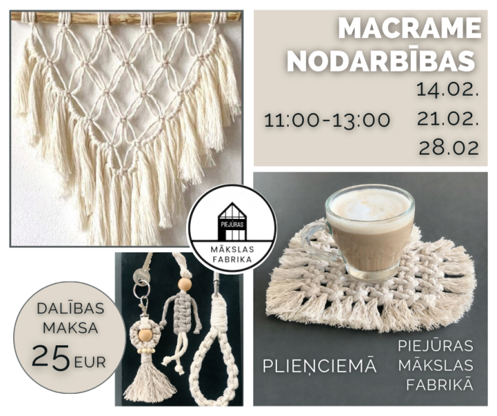 Piejūras mākslas fabrikā - Plieņciemā būs iespēja piedalīties Makrame radošajās nodarbībās.