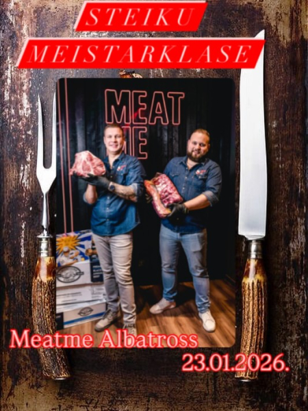Īpašā steiku meistarklase MeatMe "Albatros" restorānā, Ķesterciemā kopā ar Jāni Ozolu un Sandiju Zandersonu, atklājot steigu cepšanas noslēpumus no A līdz Z un pagatavojot 5 izcilus steikus, pieskaņojot 5 piedevas. Vakara īpašais notikums – autentiskais Kobe Wagyu A5, viens no dārgākajiem un izsmalcinātākajiem steikiem pasaulē. Vietas rezervēšana pa tālruni. Meistarklases ilguma aptuveni 2 stundas.