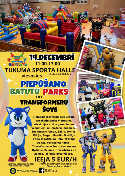 Lielākais batutu parks Latvijā piestāj Tukumā, pārvēršot sporta halli par krāsainu un jautru piedzīvojumu pasauli. Visu dienu mazie un lielie v ...