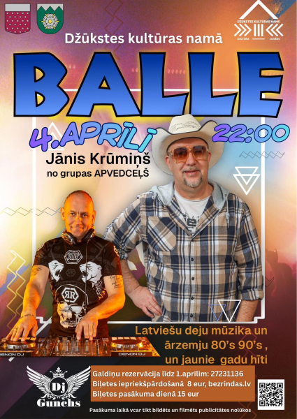 Pavasara balle Dzūkstē aicinās satikties dejā un izbaudīt vakaru, kur gaisā jau jūtama vasaras tuvošanās. Par muzikālo noskaņu rūpēsies Jānis K ...