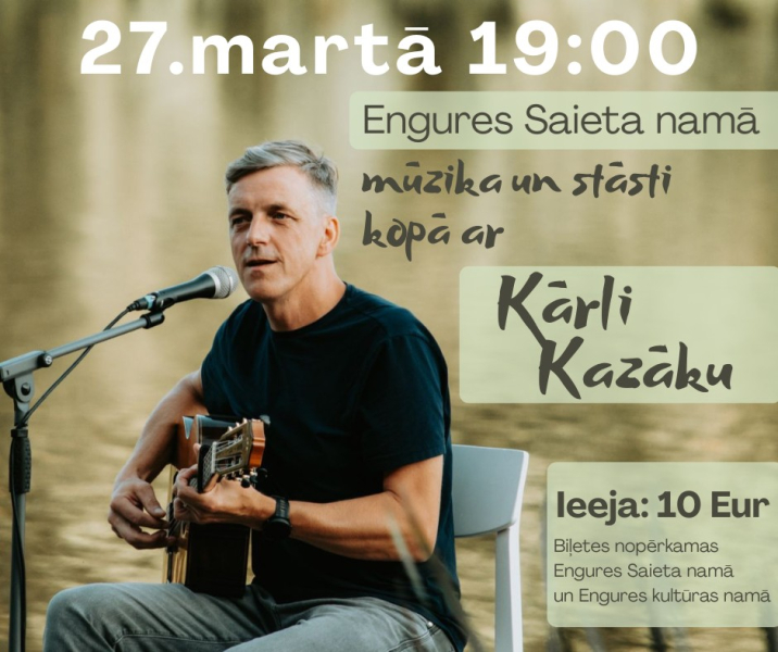 Engures Saieta namā valdīs vienkārši skaists un silts kopā būšanas vakars ar mūziķi Kārli Kazāku. Telpu piepildīs viņa sirsnīgās dziesma ...
