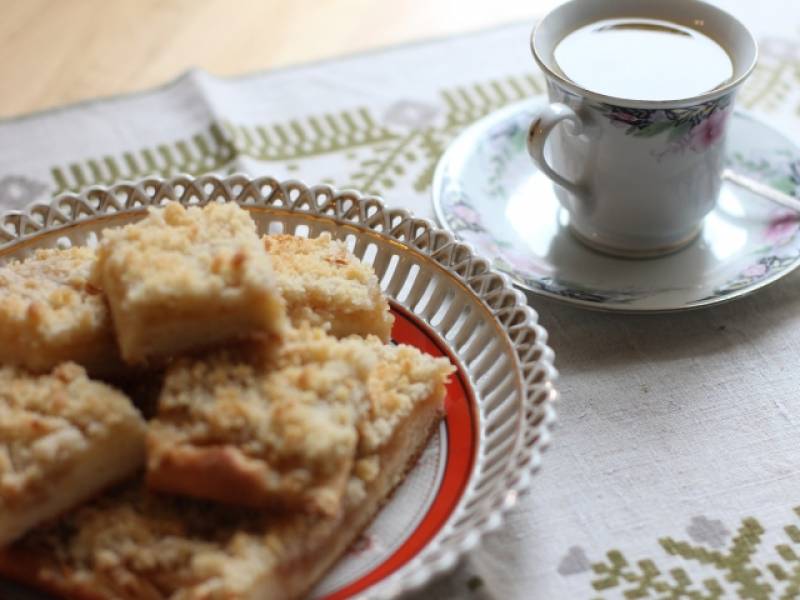 Сладкие блюда: буберт с ягодным соусом; мусс из ревеня с молоком; черничные клецки