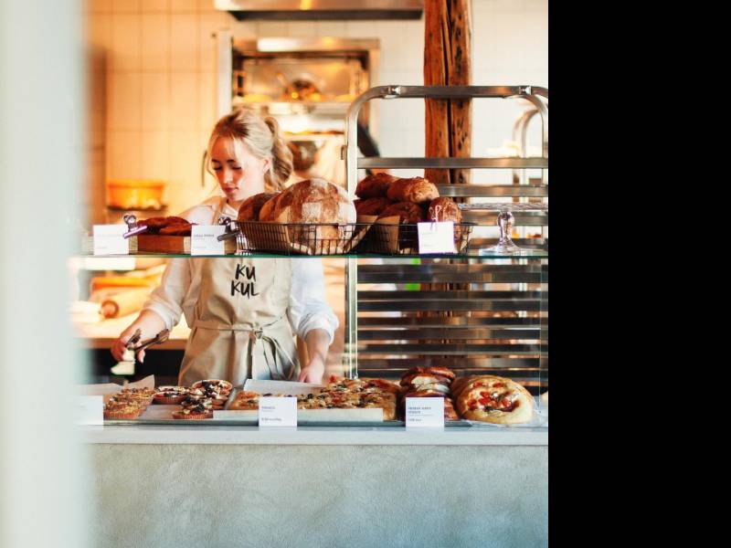 Вкусная семейная пекарня в Тукумсе, где на открытой кухне готовятся булочки, хлеб, печенье и другие кондитерские изделия. Здесь можно неспешно выпить кофе или другой напиток и насладиться разнообразными деликатесами.