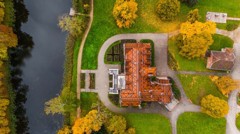 Even though there is not a lot of written or photographic evidence about the park, it appears that the oak-trees and ash-trees witnessed how our reddish brown palace was built, while some of the apple trees and sweet cherries, which still bloom and yield harvest today, gave fruit to palace residents already back in the first half of the 20th century. Likewise, bright yellow wild tulips still adorn the lawns in the springtime. A particular source of pride of the park is the centenarian lime tree alleys, which in mid-July are buzzing and on sunny days exude a mind-blowing scent.