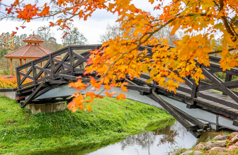 The Park was created during the rule of von der Recks. There are several secular trees in its territory. Legends say that the master had requested the gardener to plant the trees in such manner that when the trees blossom, the coat of arms of the Reck dynasty would be portrayed there. At the end of the 19th century, the pathways in the park were covered with gravel. There are several interesting points of interest in the park – a stone bridge, where there is an engraving giving a year and a monogram G. A. v. d. R. – 1905. A romantic pathway along the river takes you to the Love Rock – it once used to be a popular place for the inhabitants of Jaunpils to meet up. Here too, visitors are encouraged to take their time in the fall, but if they are tired or cold, they are invited to visit the museum or tavern at Jaunpils Castle.