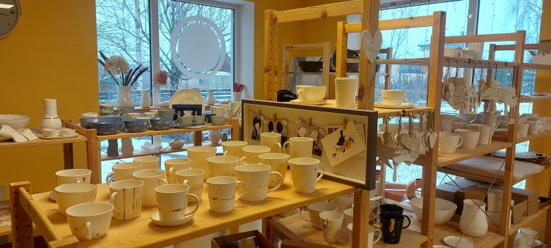 Darbnīcā ir iespēja iegādāties arī jau gatavos keramikas darbus.