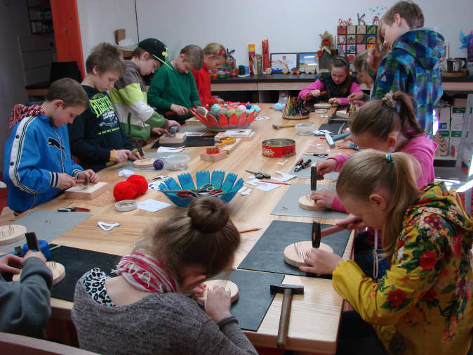 Tiek piedāvātas daudzveidīgas nodarbes, tostarp sveču liešanu dažādās tehnikās, koka auto, kuģu, vilciņu, vingrotāju un vēja rādītāju izgatavošana, puzļu zāģēšana, koka iededzināšana, tinglošana (naglu–dziju mākslu), flīžu mozaīkas, ģipša ornamentu veidošana, kā arī māla darbi – vēja zvanus un virteņu radīšana. Tāpat iespējams veidot atstarotājus un atstarotāj-virtenes, auduma maisiņus, blociņus, eglīšu rotājumus, puzurus, dzirnaviņas, knaģus ar figūriņām, dūceņus, smilšu mandalas un vēl daudz ko citu.