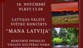 Koncertā “Mana Latvija” caur dziesmām un kopības sajūtu tiks godināta dzimtene, tās cilvēki un vērtības, kas vieno un iedvesmo. Norises vieta: Viesatu kultūras nams, “Viekaļas”, Viesatas, Viesatu pagasts, Tukuma novads. Norises laiks: 18.11.2025 plkst. 13:00. Ieeja: bezmaksas. Vairāk informācijas: 20249771
