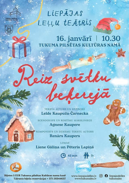 “Reiz svētku beķerejā…” ir ģimenes izrāde par drosmi mainīties, darba prieku un to, ka lielākās dāvanas reizēm slēpjas negaidītās vietās. Stāsts risinās vecā koka dobumā, kur Ziemassvētku elfi cep piparkūkas, un centrā ir neveiklais, bet asprātīgais Pudiņš, kurš kopā ar stingro Kūku piedzīvo jautrus un sirsnīgus notikumus. Izrāde rāda, kā vecie paradumi satiekas ar jaunām idejām un kā piparkūku smarža var atnest ne tikai svētkus, bet arī draudzību.
