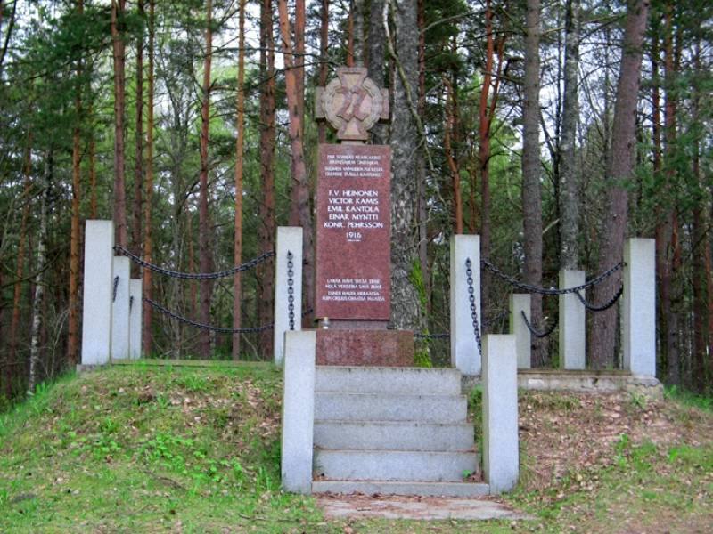 Другой памятный камень финским егерямпавшим в годы I мировой войны находится в Клапкалнциемсе. Он установлен на том тесте, где похоронены пять финских воинов, павших в боях вовремя I мировой войны. В мае 2004 года здесь был торжественно открыт заново установленный в 1929 году и снесенный во времена Советкой оккупации, памятник.