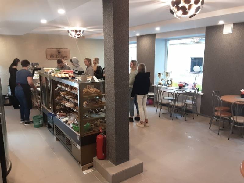 Кафе в центре Кандавы. Предлагается: банкеты, широкий ассортимент кондитерских изделий, бистро в рфбочие дни, выбор блюд из меню, аренду помещения, бассейн с мячиками для детских праздников. Возможна доставка на дом.